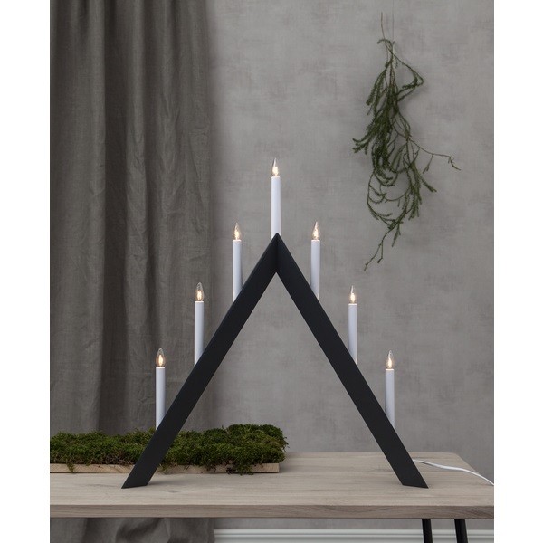 Grafit grå modern träljusstake med fasade former. Skapar en härlig julstämmning i både hem och offentlig miljö.