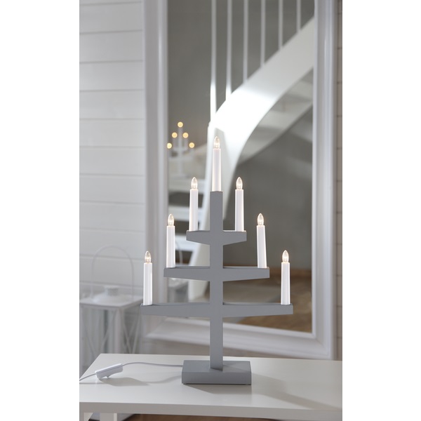 Grå träljusstake med 7 ljusskällor. Placera ljusstaken exempelvis i fönstret för att skapa en härlig adventstämning i hemmet. Ljusstaken har en kabellängd på 180cm.