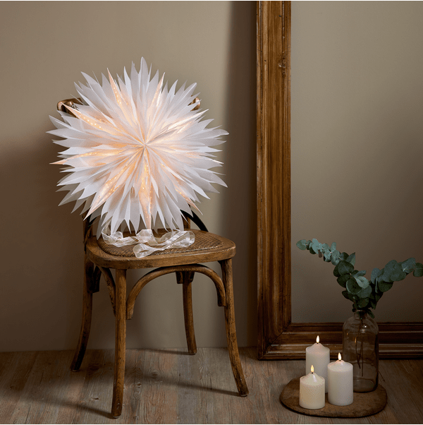Vacker semi transparent pappers stjärna. Härlig dekoration till jul för att skapa den bästa julstämningen både i fönster och mot en vägg. Köp till ett sladdställ och en ljuskälla för att lysa upp stjärnan.