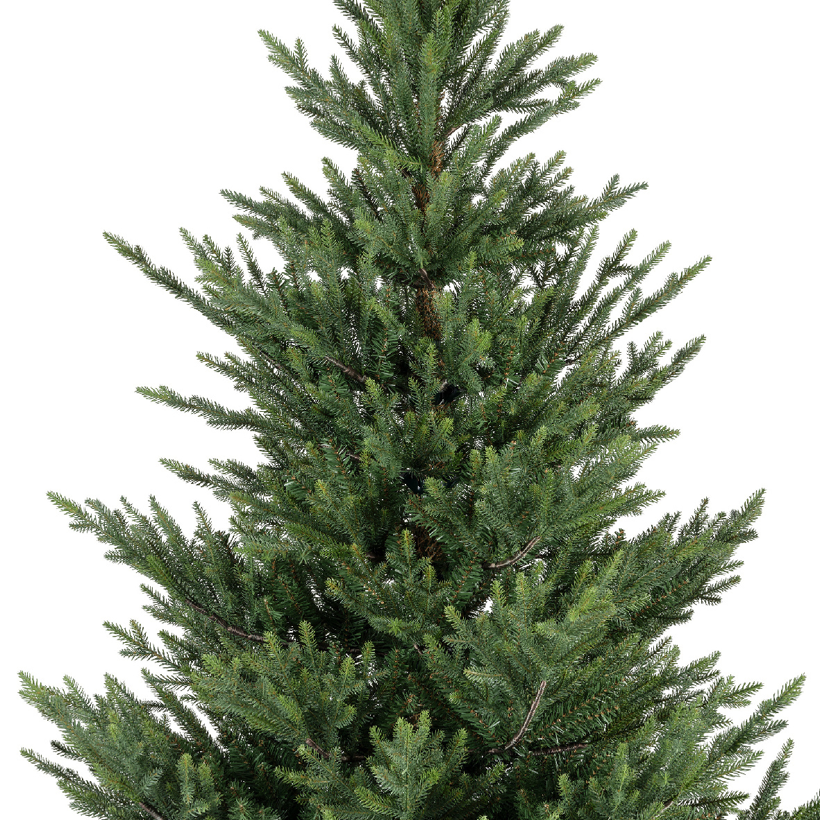 Granen har två olika typer av barr. Dels de formgjutna hårda barren som sitter längre ut på grenarna men sedan de mer traditionella barren av mjuk plast längre in på grenarna. Denna mix för att granen skall se så naturlik ut som möjligt. Det kan ta en liten stund med fluffandet av grenarna och att få den perfekt men det är det värt. Metallfot ingår.