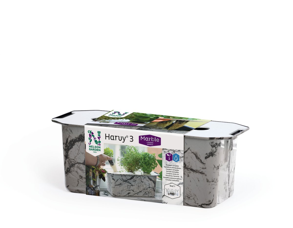 Med odlingslådan Harvy odlar du bladgrönt, kryddor och även blommor i vatten. Utan jord och utan krav på förkunskaper.
