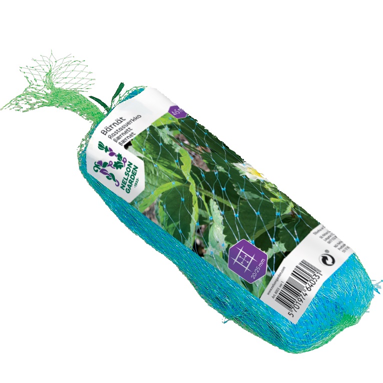 Finmaskigt nät i plast som skyddar bär och frukt mot fåglar.