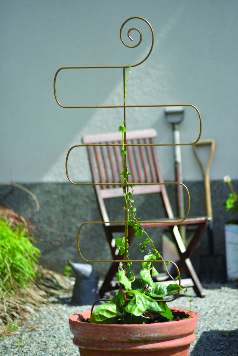 En elegant formad krukspaljé i mässingsfärgat stål som passar perfekt till de större krukorna och ute på friland. Tack vare sin höjd på 140 cm kan du låta slingerväxterna frodas! Blommor som till exempel luktärt och slingerkrasse kan tack vare Elements bli ett nytt, spännande inslag hemma i trädgården.
