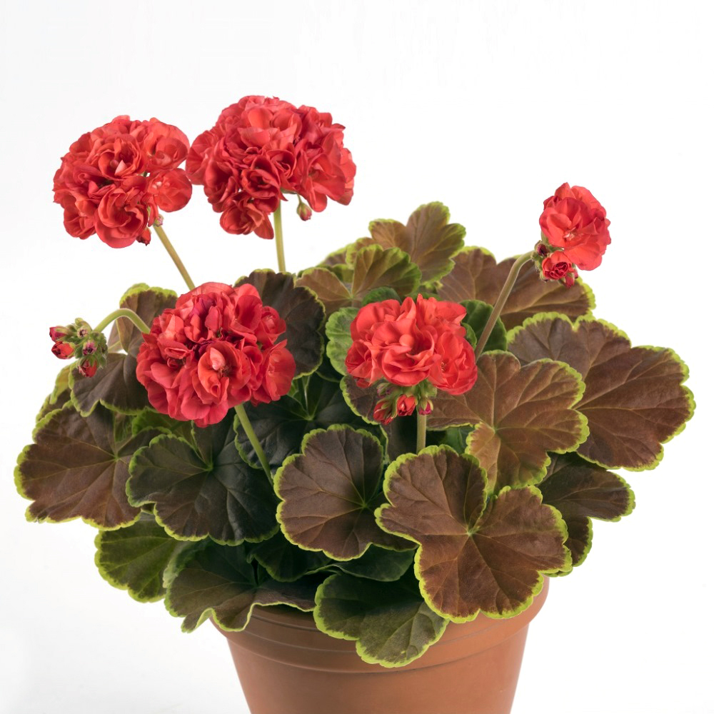 Dekorativpelargon Caramel Red, kruka