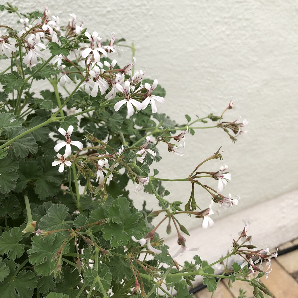 Doftpelargon ’Marias Blomma’ är en ljuvlig och gracil pelargon med små, skira vita blommor och en underbar, tydlig doft. Blommorna är nätta men mycket charmiga och bidrar till ett mjukt och romantiskt uttryck.