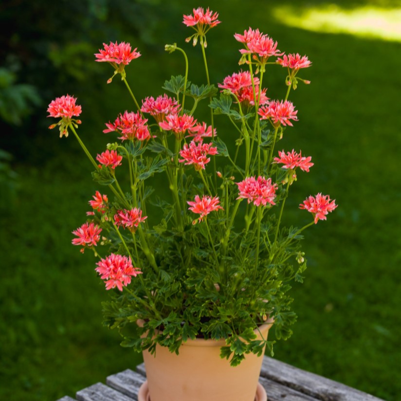 Pelargon ’Els’ är en elegant fingerpelargon med ett uttryck som tydligt skiljer sig från andra pelargoner. Både blommor och blad har en egen, speciell form, där just bladens karaktäristiska utseende har gett namn åt hela gruppen fingerpelargoner.