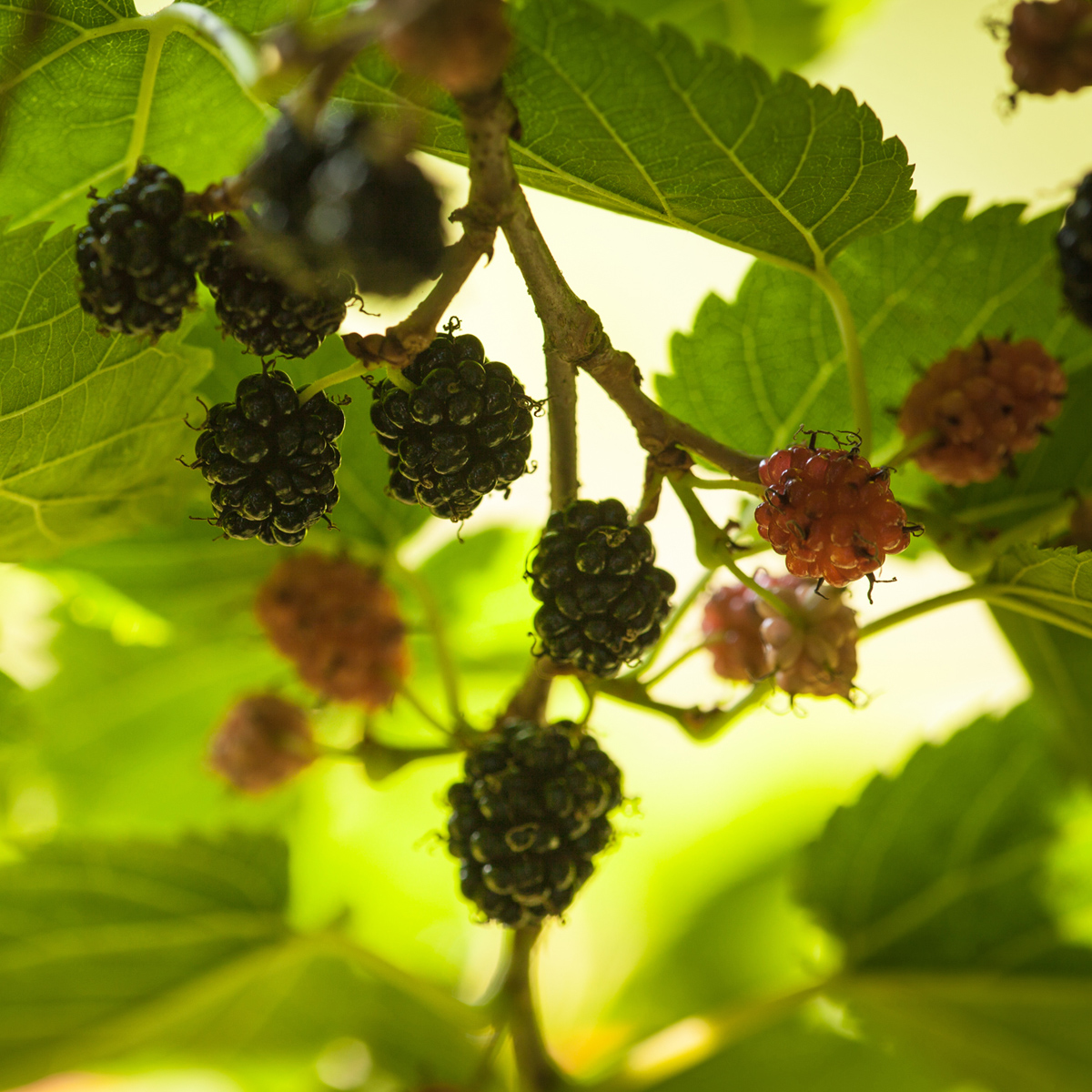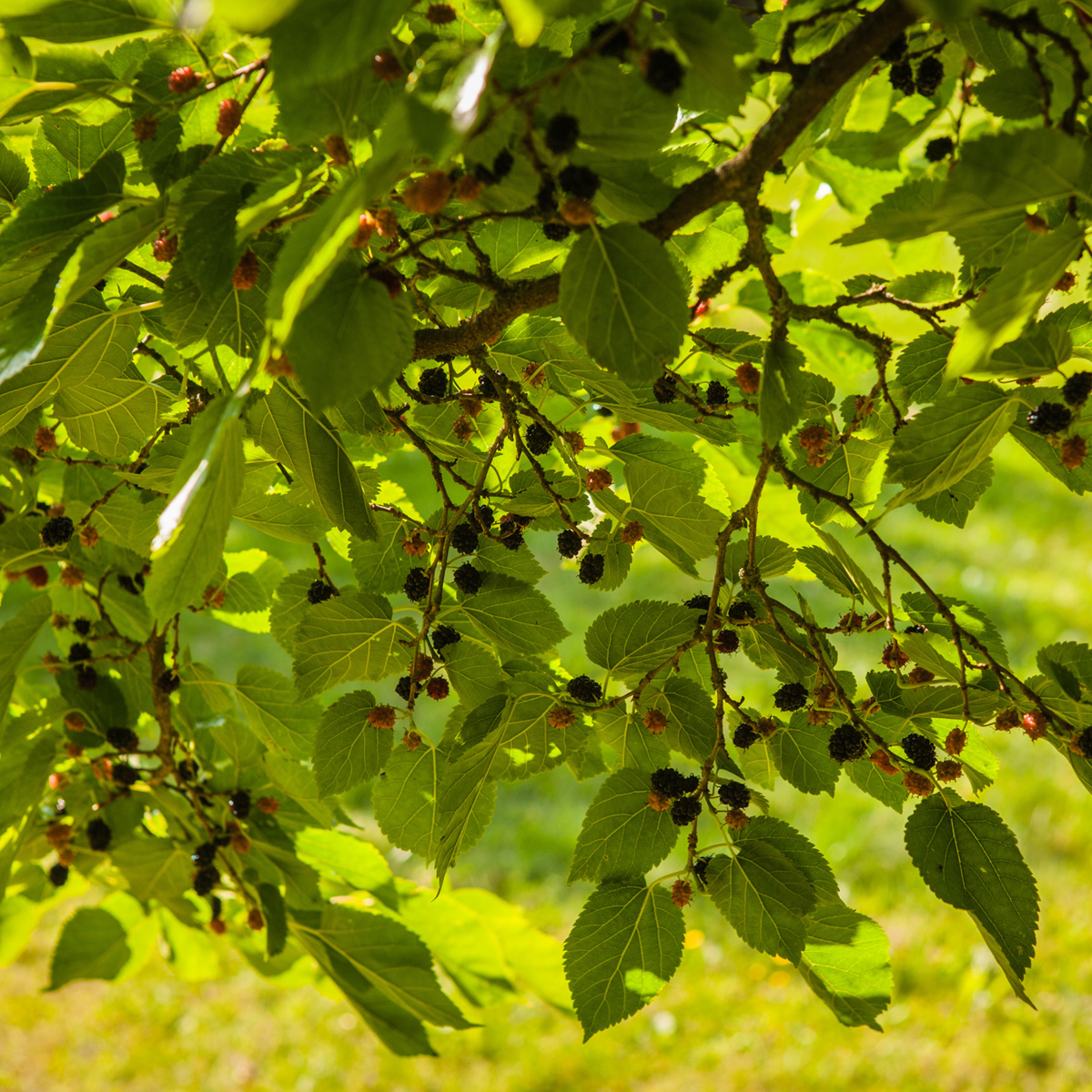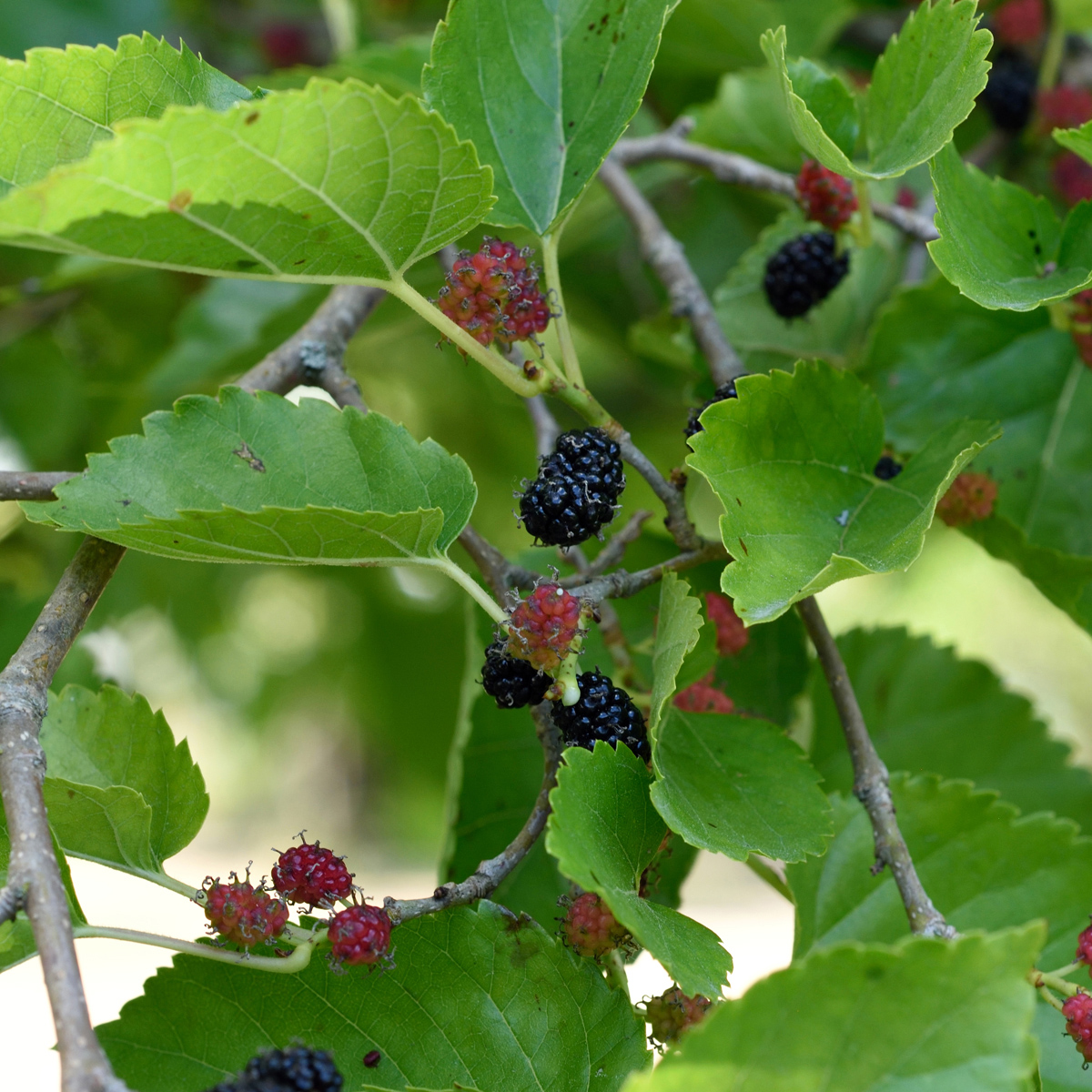 svarta söta aromatiska bär, mognar juli-sept, vit, juni, 3-5m, sol, zon 1-4.