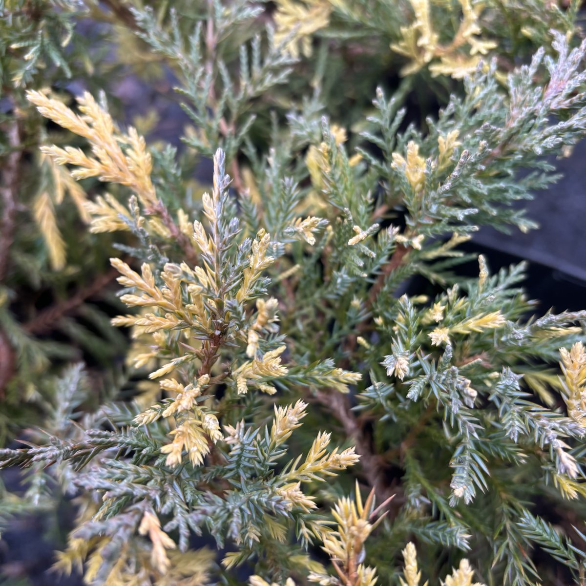 Juniperus x pfitzeriana Blue and Gold, Juniperus x pfitzeriana Blue and Gold, Trädgårdsen, 20-25 C2