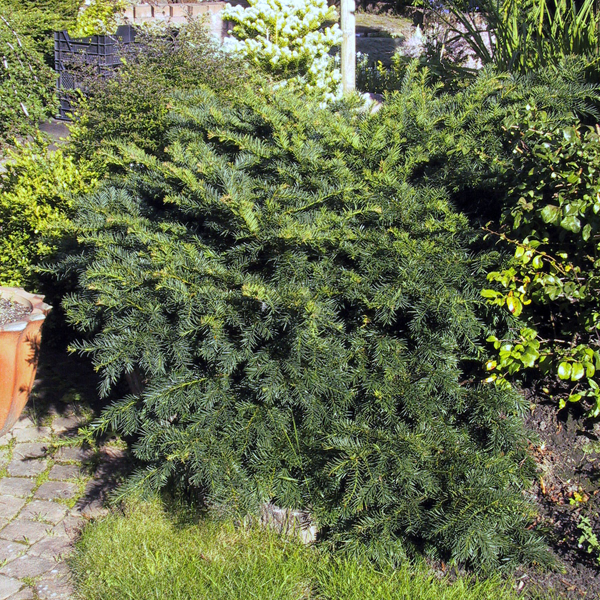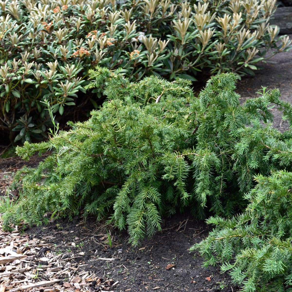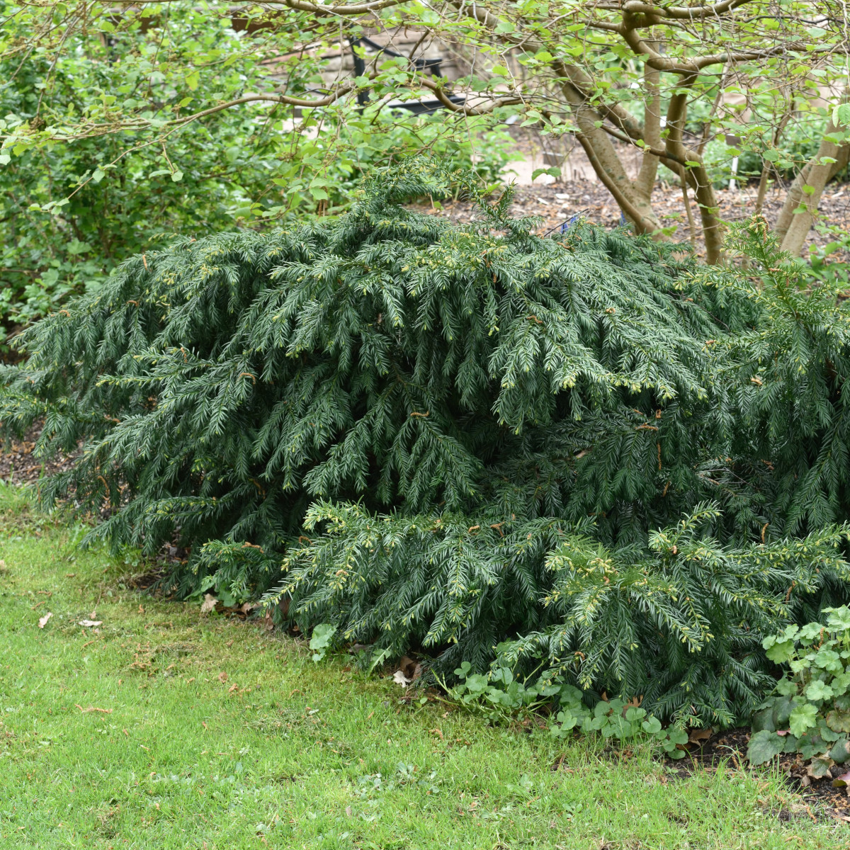 Krypidegran, Taxus baccata 'Repandens', är en lågväxande och brett utbredd vintergrön sort med ett elegant och mjukt växtsätt. Den når en höjd på endast 30–50 cm men kan breda ut sig till flera meter, vilket gör den perfekt som marktäckare i trädgårdar och parker. De mörkgröna, glänsande barren är mjuka och arrangerade längs de nedåtböjda grenarna, vilket ger ett böljande och naturligt utseende. Till skillnad från många andra idegranar producerar denna sort inga bär, vilket gör den särskilt praktisk i områden där frukt önskas undvikas.