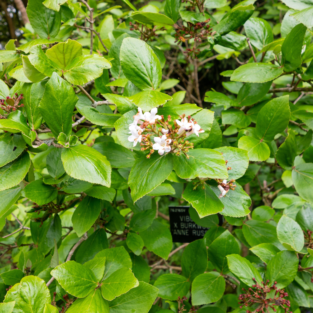 Viburnum × burkwoodii 'Anne Russell', på svenska känt som burkwoodolvon 'Anne Russell', är en lövfällande buske med ett kompakt, klotformigt växtsätt. Den blir cirka 1,5–2 meter hög och 1–1,5 meter bred. Bladen är mörkgröna, blanka och ovala, och får på hösten vackra röda, orangea eller gula nyanser innan de faller av. Under våren, från april till maj, spricker rosa knoppar ut i doftande, vita blommor som sitter i välvda klasar, cirka 8 cm i diameter. Blommorna har en stark och behaglig doft, ofta beskriven som söt och kryddig. Efter blomningen utvecklas röda bär som mognar till svarta under hösten.