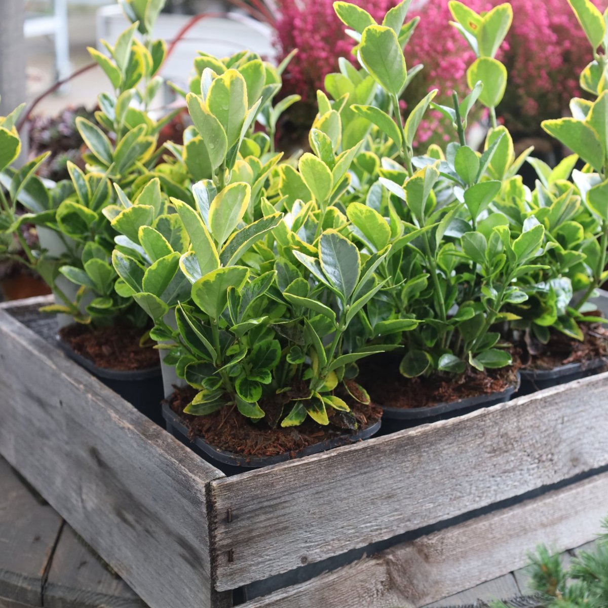 En elegant och lättskött vintergrön buske med täta, blanka blad i vackra gröna eller brokiga nyanser. Perfekt som låg häck, solitär eller i kruka. Tålig mot vind och beskärning – håller formen året runt och ger trädgården struktur och färg oavsett säsong.