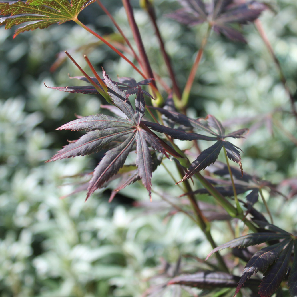 rödlilabrun flikiga blad, rödlila blad våren, röd höstfärg, 2-4m, sol, halvskugga, zon 1-3 (4).