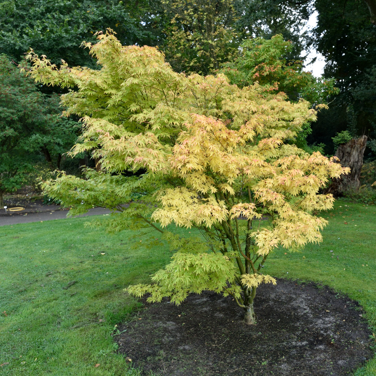**Acer palmatum 'Sango-kaku'** har tilldelats den prestigefyllda **RHS Award of Garden Merit (AGM)**, vilket är ett bevis på dess pålitlighet, skönhet och värde i trädgården. För bästa utveckling bör trädet planteras i sol till halvskugga, gärna i ett skyddat läge för att undvika vindskador på de känsliga bladen. Det trivs i väldränerad, näringsrik och fuktighetshållande jord med ett något surt till neutralt pH-värde. Blåsiga, torra eller utsatta lägen bör undvikas. Beskärning är sällan nödvändig, men om det behövs bör den utföras under **JAS-perioden** (juli, augusti, september) för att minimera risken för savflöde. Denna japanska lönn är idealisk som solitär i mindre trädgårdar eller som en del av en blandad plantering, tack vare sitt unika bladverk och prydnadsvärde under hela året.