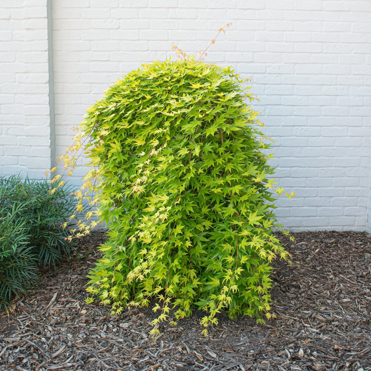 Acer palmatum 'Cascade Gold', eller japansk lönn, är en kompakt, pelarformad och lövfällande buske med ett graciöst, hängande växtsätt. Bladen är djupt flikiga och slår ut i en gyllengul färg med orange-röda kanter på våren, övergår till ljusgrönt under sommaren och avslutar säsongen med lysande gula, orange och röda nyanser på hösten. Färgskiftningarna genom säsongerna gör den till ett verkligt blickfång i trädgården.