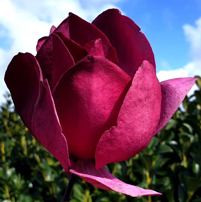 mörkrosa-lila 25cm, april-maj, blommar om på sommaren, 5m, sol, zon 1-2(3).