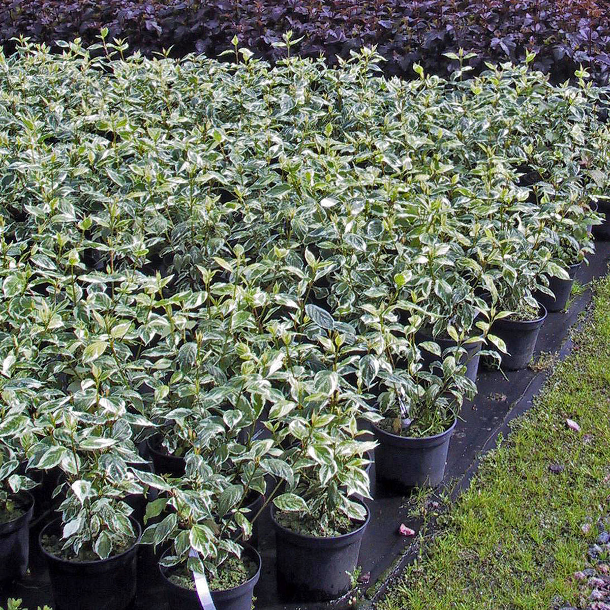 Cornus alba Elegantissima, även kallad rysk kornell, är en dekorativ och mångsidig buske som skapar intresse i trädgården året runt. Under maj och juni pryds busken av små vita blommor som följs av vita bär på hösten. Bladverket är grönvitt brokigt med silvervit kant, vilket lyser upp även de mörkare delarna av trädgården. På hösten antar bladen en vacker gul- och vinröd färg. Nya grenar är röda och ger busken ett iögonfallande uttryck, särskilt under vintern.Elegantissima blir 1,5–2,5 meter hög och har ett brett, upprätt och luftigt växtsätt. Den är tålig och lättodlad, vilket gör den idealisk för många typer av trädgårdar. Den trivs bäst i sol eller halvskugga och föredrar väldränerad, något fuktig jord. Busken fungerar utmärkt som solitär, i buskage eller som en del av en blandad plantering. Med sina färgskiftningar, brokiga blad och prydnadsvärde året om är Cornus alba Elegantissima ett fantastiskt val för att skapa en levande och harmonisk trädgårdsmiljö.
