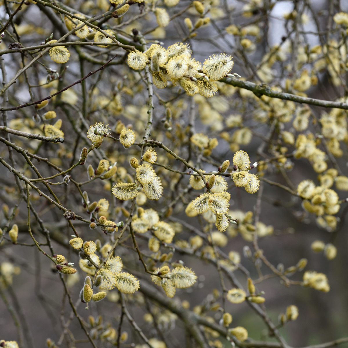silvergrå videkissar, mattgröna blad, 9-12m, sol-halvsk, zon 1-6.