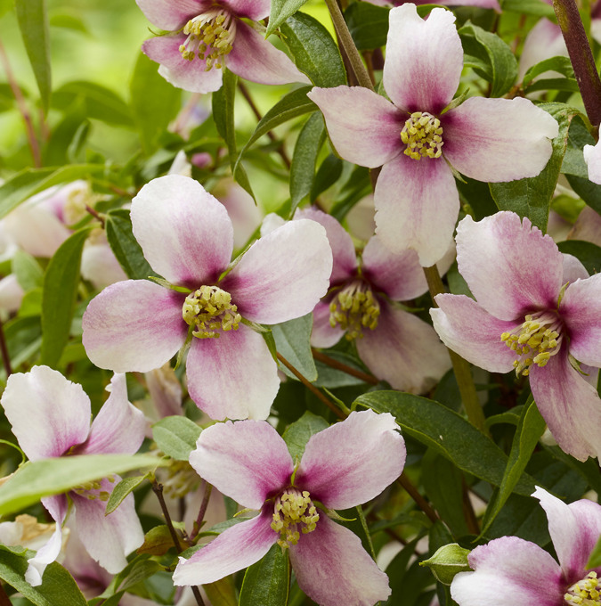 Doftschersmin (Philadelphus 'Petite Perfume Pink'®) är en kompakt, lövfällande buske som blir cirka 1,2 meter hög och bred. Den kännetecknas av sina ljusrosa blommor med mörkare centrum, vilka avger en stark, behaglig doft. Blomningen sker från maj till juni och kan vara i upp till sex veckor, vilket ger en lång period av färg och doft i trädgården. Blommorna sitter i klasar längs grenarna och kontrasterar vackert mot det friskt gröna bladverket.