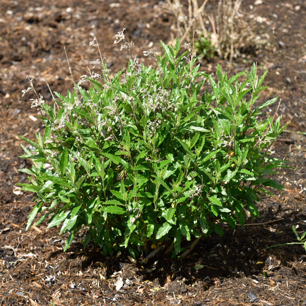 Busken har ett tätt, rundat växtsätt och blir vanligtvis 60–100 cm hög och bred. Bladen är smala, lansettformade och har en vackert grågrön nyans med en lätt silverton. Vid beröring avger bladen en mild, aromatisk doft, vilket förstärker dess charm. De grågröna bladen skapar en fin kontrast till de lysande blå blommorna och ger en elegant färgspel i rabatter och blandade buskplanteringar.