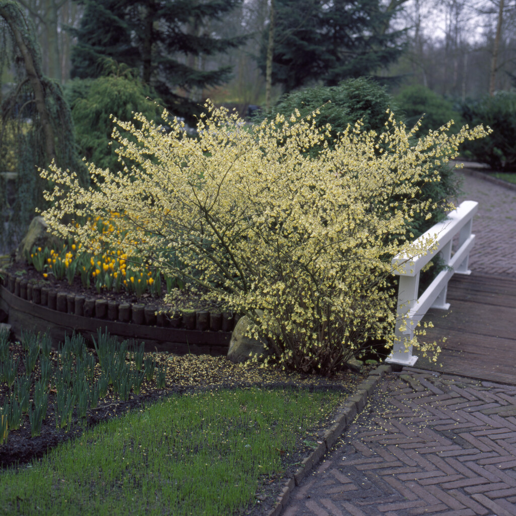 Bladen är breda och hjärtformade till ovala med en mjuk, något veckad yta och tydliga nerver. De är cirka 6–10 cm långa och ger ett frodigt uttryck under sommaren. På hösten skiftar bladen till varma nyanser av gult och orange, vilket förstärker buskens dekorativa värde. Skenhasseln trivs bäst i väldränerad, näringsrik jord och föredrar en halvskuggig placering, skyddad från starkt solljus och vind. Beskärning behövs sällan, men om formen behöver justeras kan detta göras direkt efter blomningen. Med sin tidiga blomning, doftande blommor, vackra blad och lysande höstfärger är Corylopsis spicata ett utmärkt val för att ge trädgården både skönhet och doft under större delen av året.