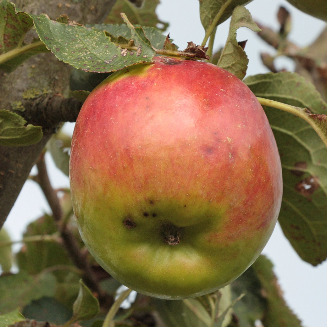 Tuote Kuvaus:medelstor till stor rödgul, fast saftigt krispigt vitt fruktkött, mild sötsyrlig smak, mognar sept-okt, kan lagras till nov-dec, dessert, bord och hushållsfrukt, 2-3m, bra till ekologisk odling, sol, zon 1-4 (5), kräfta, mjöldagg och skorvresistent.