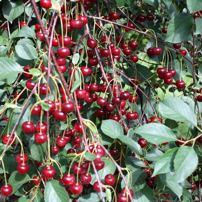 medelstor, mörkröd, saftigt mörkrött fruktkött, sötsyrlig smak, mognar juli-aug, dessert, bords och hushållsfrukt, bra till ekologisk odling, sol, zon 1-5, självfertil.