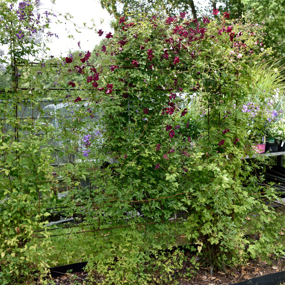 'Rubra' är en kraftig klättrare som når en höjd på cirka 2,5–3 meter, vilket gör den idealisk för spaljéer, pergolor eller för att klättra upp i mindre träd och buskar. Den trivs bäst i väldränerad, näringsrik jord och föredrar en plats i sol till halvskugga. Beskärning är inte nödvändig men kan utföras vid behov för att forma eller föryngra plantan. Om beskärning önskas, gör det tidigt på våren enligt beskärningsgrupp 3, genom att klippa ner plantan till cirka 20–50 cm ovan mark. Med sin rika färg, långa blomningstid och tåliga natur är Clematis viticella 'Rubra' ett utmärkt val för både nybörjare och erfarna trädgårdsentusiaster.Denna sort har också fått erkännande för sina trädgårdsvärden och har tilldelats utmärkelser som bekräftar dess kvalitet och pålitlighet i odling.