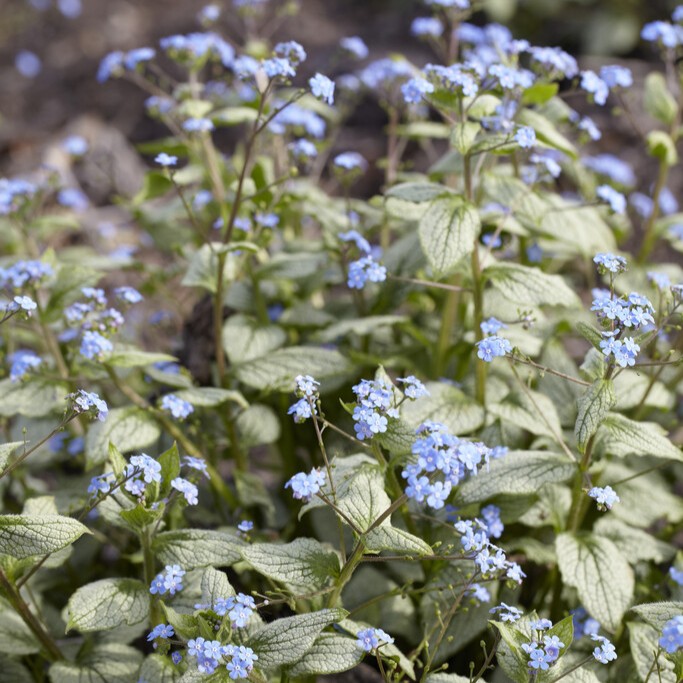 blå, silverfärgad hjärtform gröna ådror, apr–maj, 30–40cm, halvsk–sk,A