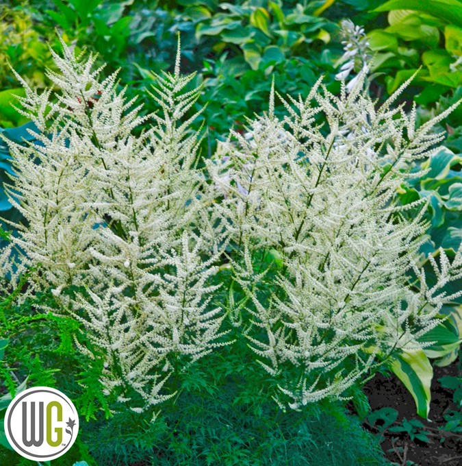 Perenn. Ny låg plymspirea som endast blir ca 50 cm hög och lika bred. Vacker cremefärgad luftig blomställning och vackert bladverk. Kompakt växtsätt. Påminner om astilbe men är mer torktålig. Trivs i alla ljusförhållande men passar bäst i skuggträdgården. Både blommor och blad är fina till snitt. Drar till sig bin.