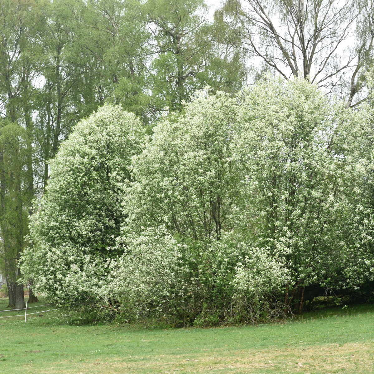 Tuote Kuvaus:Prunus padus Fk Ultuna E är en frisk, vital och blomrik hägg med naturligt upprätt växtsätt och brett välvd kronform i äldre ålder. Under maj månad slår långa, hängande klasar av rent vita, starkt doftande blommor ut och täcker grenarna i ett intensivt blomflor som lockar både bin och andra pollinatörer. Bladverket är mörkgrönt, brett elliptiskt och glansigt med en frisk grönska från vår till höst. Under sensommaren utvecklas glänsande svarta bär som är mycket uppskattade av fåglar, särskilt trastar. Trädet har ett naturligt dekorativt grenverk även utan löv och ger tydlig struktur i landskapsrummet året om.