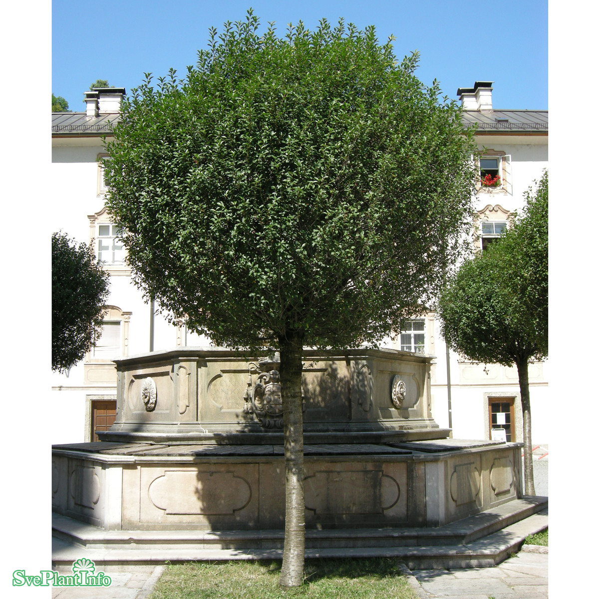 Tuote Kuvaus:Prunus × eminens ‘Umbraculifera’ är ett formstarkt klotkörsbär i trädform med 120 cm hög ympad stam och en naturligt rund, tät och symmetrisk krona som behåller sin bollform utan omfattande beskärning. I april till början av maj blommar trädet med små, vita enkla blommor i korta knippen längs grenarna, ofta samtidigt med eller strax före lövsprickning. Blomningen är diskret men finstämd och ger ett ljust flor mot de nakna grenarna. Bladverket är glänsande mörkgrönt under sommaren och skiftar till gula eller orange toner på hösten. Trädet är oftast fruktfritt och mycket lättskött.