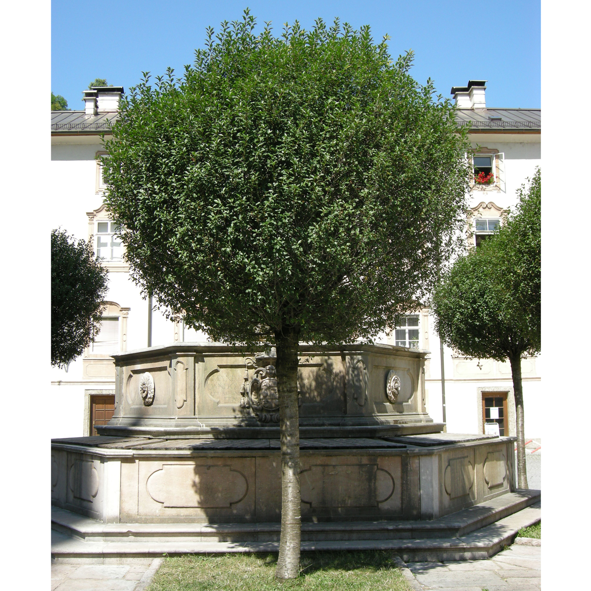 Tuote Kuvaus:Prunus × eminens ‘Umbraculifera’ är ett dekorativt klotkörsbär med 180 cm hög ympad stam på Prunus serrula, vilket ger kombinationen ett särskilt högt prydnadsvärde året om. Kronan är naturligt rund, tät och symmetrisk, med korta, tätt sittande grenar som behåller sin bollform utan behov av regelbunden beskärning. I april till början av maj blommar trädet med små, vita enkla blommor i knippen längs grenarna, ofta samtidigt med lövsprickningen. Bladen är blanka, mörkgröna och ovala, och övergår på hösten i gyllengula till orange toner. Trädet är i stort sett fruktfritt och mycket lättskött.