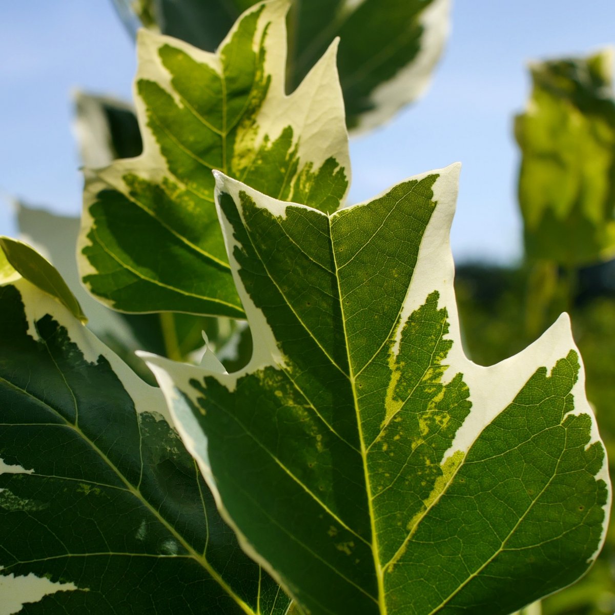 Tuote Kuvaus:Liriodendron tulipifera 'Snow Bird' är en ovanlig och mycket dekorativ sort av tulpanträd med ett regelbundet, upprätt växtsätt och ett iögonfallande brokbladigt bladverk. Bladen är stora, fyrauddiga och liknar en stiliserad tulpan i formen, med mörkgrön grundfärg och breda, oregelbundna kanter i krämvitt till ljusgult. Det tvåfärgade bladverket ger ett friskt och ljusreflekterande intryck under hela växtsäsongen och förblir dekorativt långt in på hösten då det övergår i ljusgula toner. Det ovanliga mönstret är stabilt och tydligt även på unga skott.