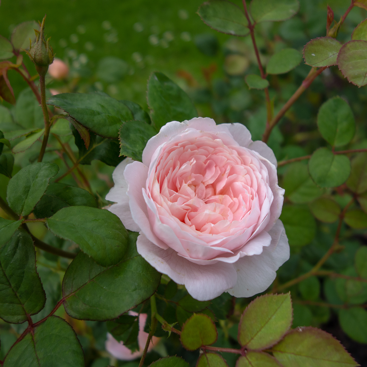 En mjukt romantisk, frisk och mycket välbalanserad austinros som ger ett elegant och stilla uttryck i både moderna och traditionella trädgårdsmiljöer.