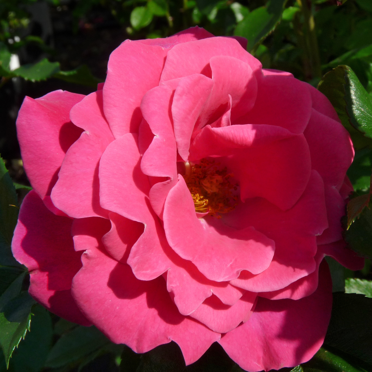 Bladverket är mörkgrönt, friskt och lätt glänsande, vilket lyfter fram de aprikosrosa blommorna och ger busken en välvårdad helhet. Sorten är känd för sin goda sjukdomsresistens och sitt kompakta, balanserade växtsätt.