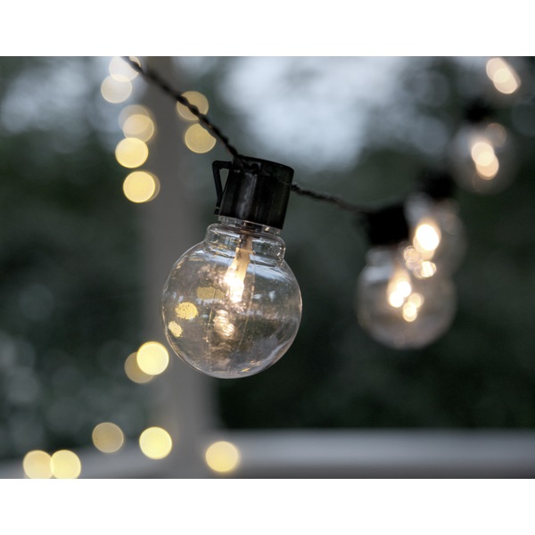 Partyljusslinga med 16 klara LED-ljuskällor för utomhusbruk. Häng upp ljusslingan i taket som en dekorativ och stämningsfull inredning. Ger ett vackert och mysigt sken i mörkret.