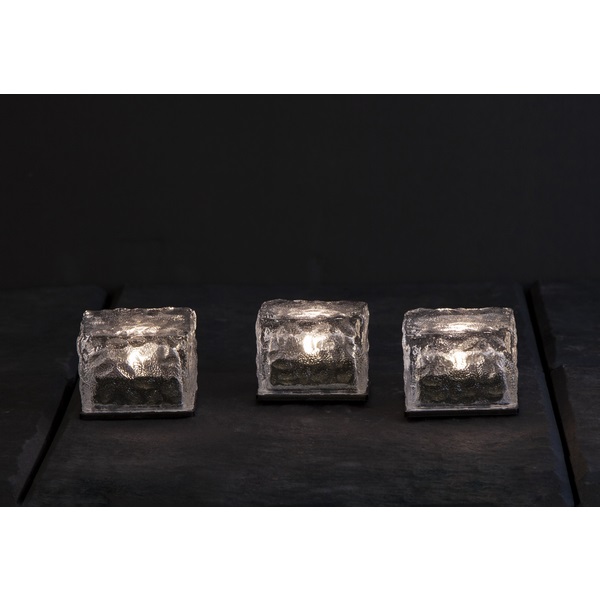 Set om 3 iskuber som drivs med hjälp av solenergi, laddar på dagen och lyser med varmvitt sken under natten.