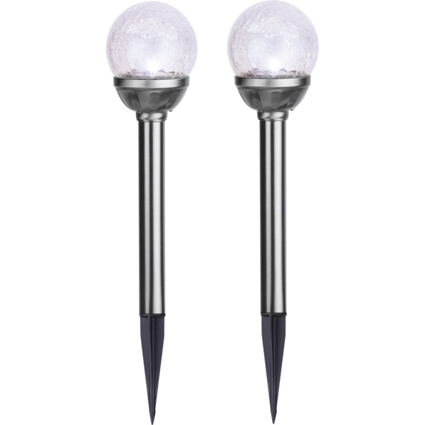 Solcellsdrivet 2-pack gångljus med krossad glaskula. Fin dekoration att placera i entrén, på stigen och i trädgården. Lyser upp fint och ger ifrån sig ett inbjudande ljus.