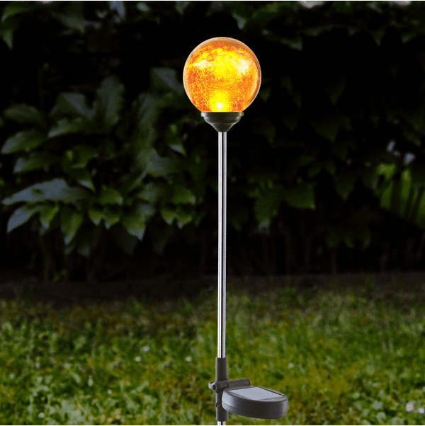 Soldrivet gångljus med en amber glaskula. Ljuset har 1 LED-ljuskälla som ger ett vackert sken. Snygg dekoration att placera i entrén, på stigen och i trädgården.