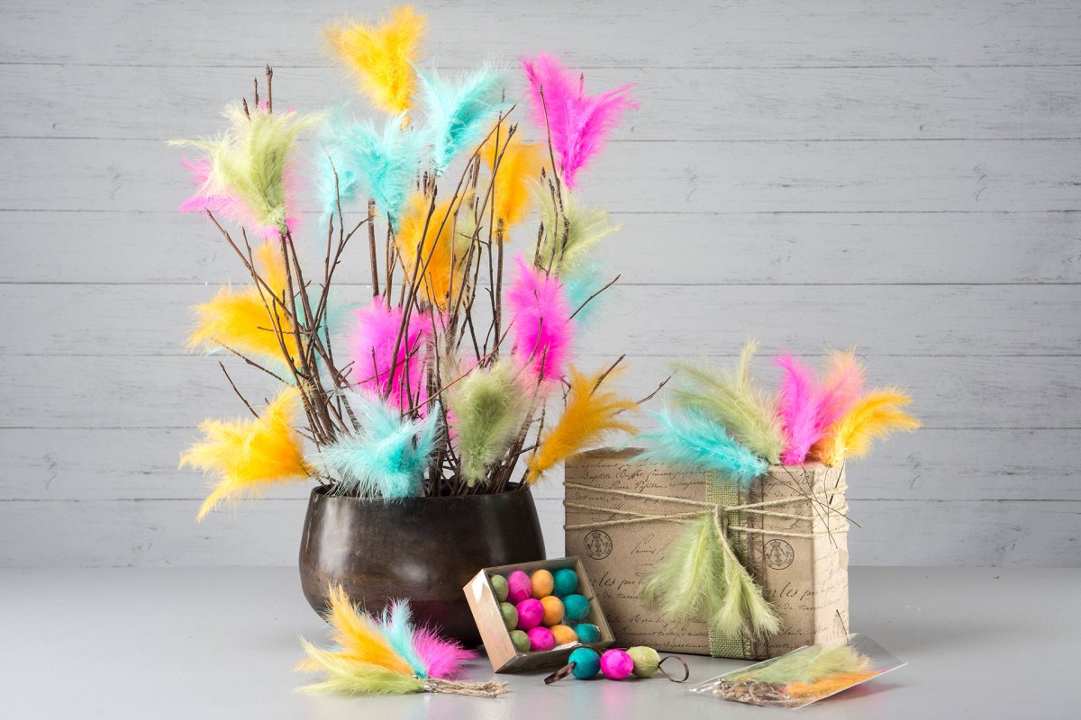Fjäder Häng 10cm 12-pack Mix