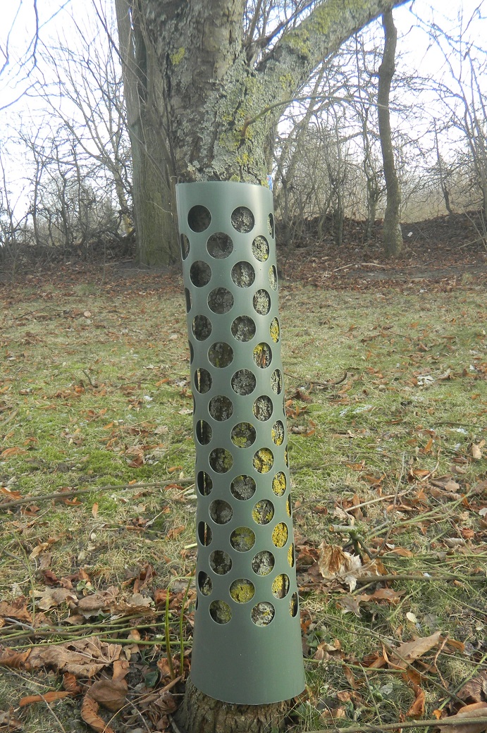 Gnagskydd som är 80 cm högt, perforerat med hål som är 29 mm i diameter.