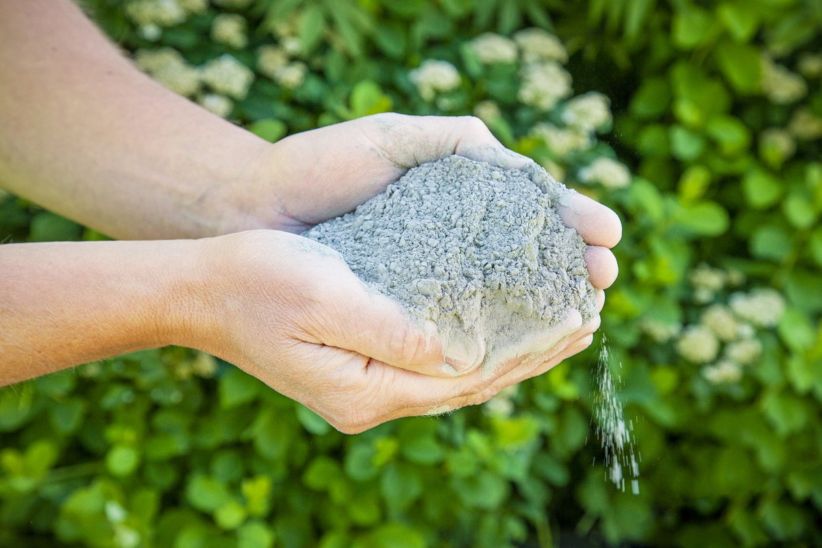 inblandning i jordar till träd, buskar och grönsaker. Pulvret används för att öka halten