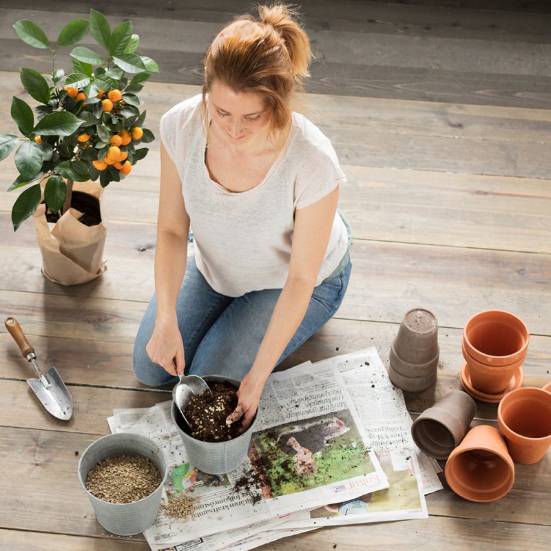 I egna jordblandningar till krukor, jordkuber mm.