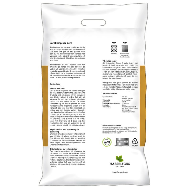 Lera blandar du in i jorden för att öka förmågan att hålla både fukt och näring. Lerpartiklarna är väldigt små och skapar ett fint porsystem som binder vattnet rätt hårt i jorden. Den här leran är granulerad så att leran hamnar som små klumpar i jorden. Det gör att jorden inte täpps till och blir för tät. Lera har hög näringsbindande förmåga och det gör att växtnäringen lagras som en depå på lerpartiklarna vilket minskar risken för urlakning.