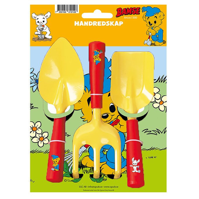 Handverktyg för barn. Kratta, spade och liten skålspade.