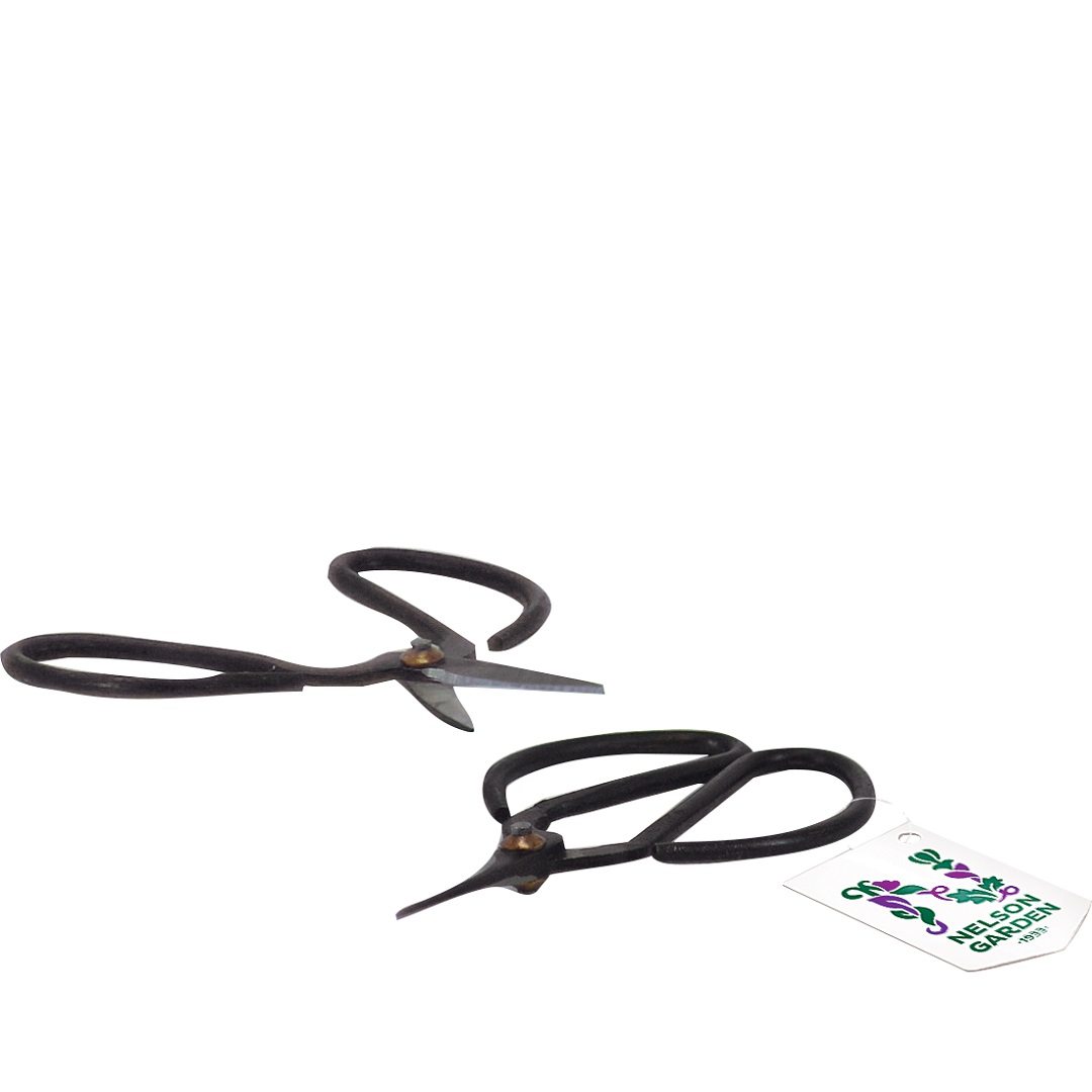 Vacker kryddsax i bonsaimodell. Nätt, snygg och praktisk när kryddor ska skördas eller krukväxter trimmas. Av svart metall. Längd: 10cm.