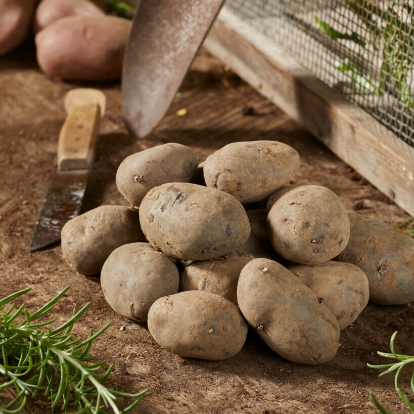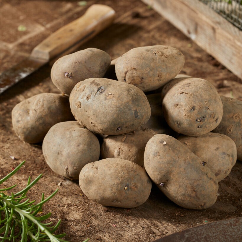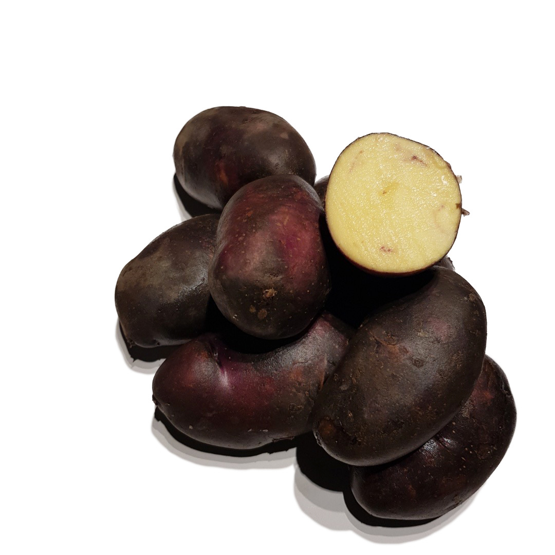 Potatis ’Blå Mandel’ är en klassisk svensk kulturarvssort som odlades i norra Sverige redan på 1800-talet. Den ger avlånga knölar med mörkt blålila skal och ljust, fast kött. Smaken är kraftig och karakteristisk, älskad av många potatisentusiaster. Mandelpotatis blir fastare i norr och mjöligare i söder, vilket är typiskt för sorten.