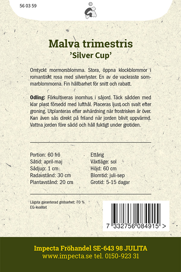 Lavatera trimestris Silver Cup, Malva, Sommar-, Silver Cup