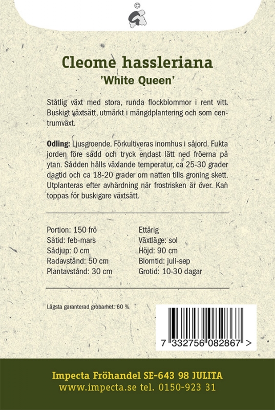 Cleome hassleriana White Queen, Paradisblomster White Queen