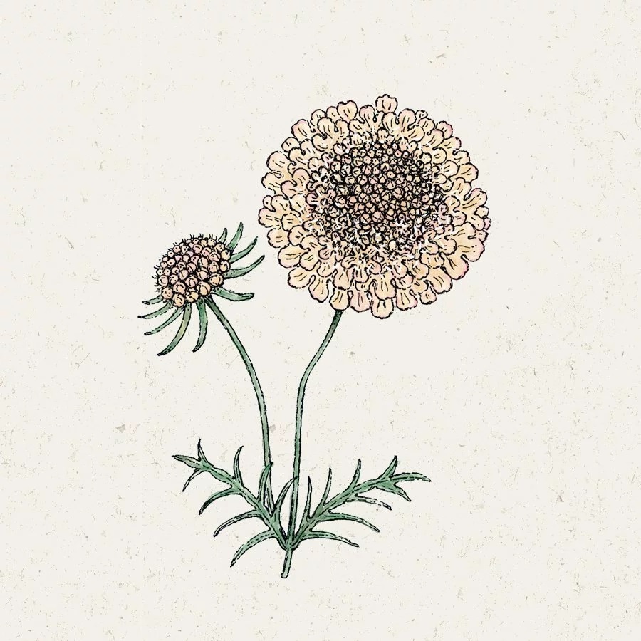 Denna praktvädd imponerar med en exceptionellt mjuk färg mellan krämig gul och karamell. Förgyller sommarens alla buketter. Blommornas doft attraherar humlor, bin och fjärilar. Kan behöva stöd. Klipp bort vissna blommor efter hand eller torka fröställningen till eternell.